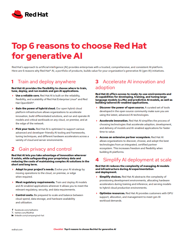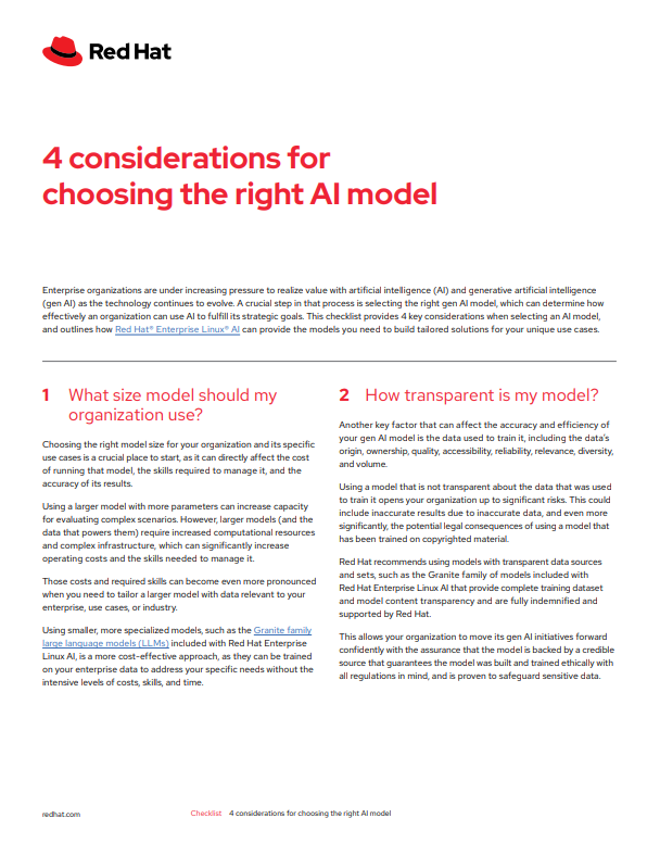 This checklist from Red Hat provides a practical decision-making framework to help organisations select the right AI model—ensuring scalability, responsible use, and long-term ROI.